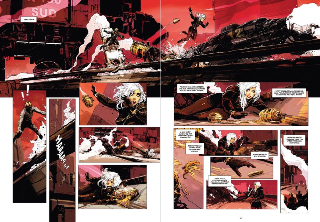 No właśnie - sfery. Trzy tajemnicze obiekty z okładki w komiksie przemkną przez kadr niczym rzeczywiste,rozpędzone obiekty by zniknąć w wodach Europy, księzyca Jowisza. To na ich punkcie obsesję ma wybudzony ze snu Prax’x, ale ani jemu, ani czytelnikowi nie jest dane w pierwszym tomie mocniej wejść w temat. Alain Brion wyraźnie zdaje sobie sprawę, że trzyma w ręce fabularny atut, ale tajemnicą dzieli się niechętnie - woli tworzyć podbudowę pod nadchodzące wydarzenia, pokazując nam różne odnogi świata przedstawionego, zahaczając o religię, nałogi, planetarne korporacje, a nawet odrobinę mistycyzmu związanego z aksolotlami. Niby dużo tu się dzieje, ale autor bardzo powoli pcha fabułę do przodu, bo bardziej mu zależy na zarysowaniu całej sieci powiązań między różnymi bohaterami i wydarzeniami w których uczestniczą.