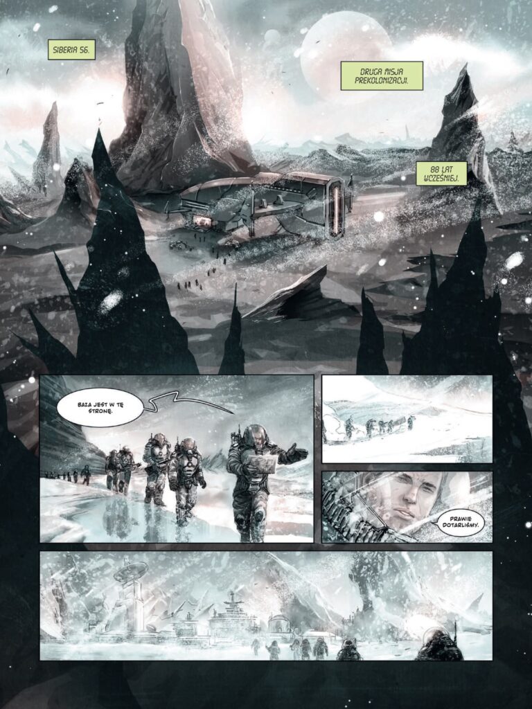 W tak nieludzkich warunkach piątka kolonistów musi dotrzeć do bazy. Po pokonaniu 80 milionów lat świetlnych przez kosmos ich wahadłowiec rozbija się na białej i nieskalanej powierzchni tego nieprzyjaznego świata. Ocalałych czeka więc kolejna podróż – 250 kilometrów. Tym razem pieszo.