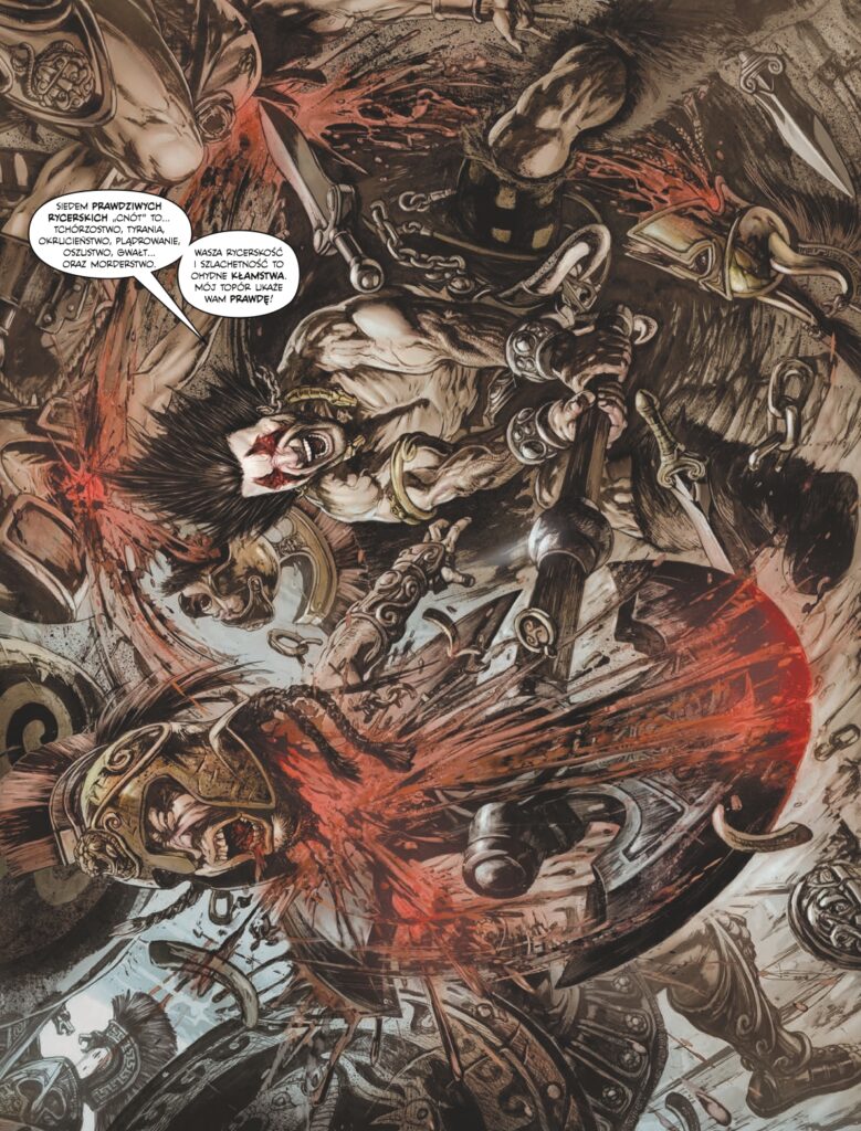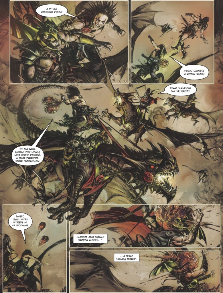 Wielki finał epopei fantasy o Slaine, celtyckim wojowniku przemierzającym, na przestrzeni wieków, tereny Brytanii. To ostatnia historia jaką napisał w tym uniwersum twórca tej postaci Pat Mills. Finał godny tego wojownika, fantastycznie, wręcz oszałamiająco zilustrowany przez Leonardo Manco. Ten artysta jest świetnie znany polskiemu czytelnikowi z Hellblazera, X-force czy sagi Millenium. To co jednak pokazał na kartach tej opowieści przebija każdy jego wcześniejszy komiks.