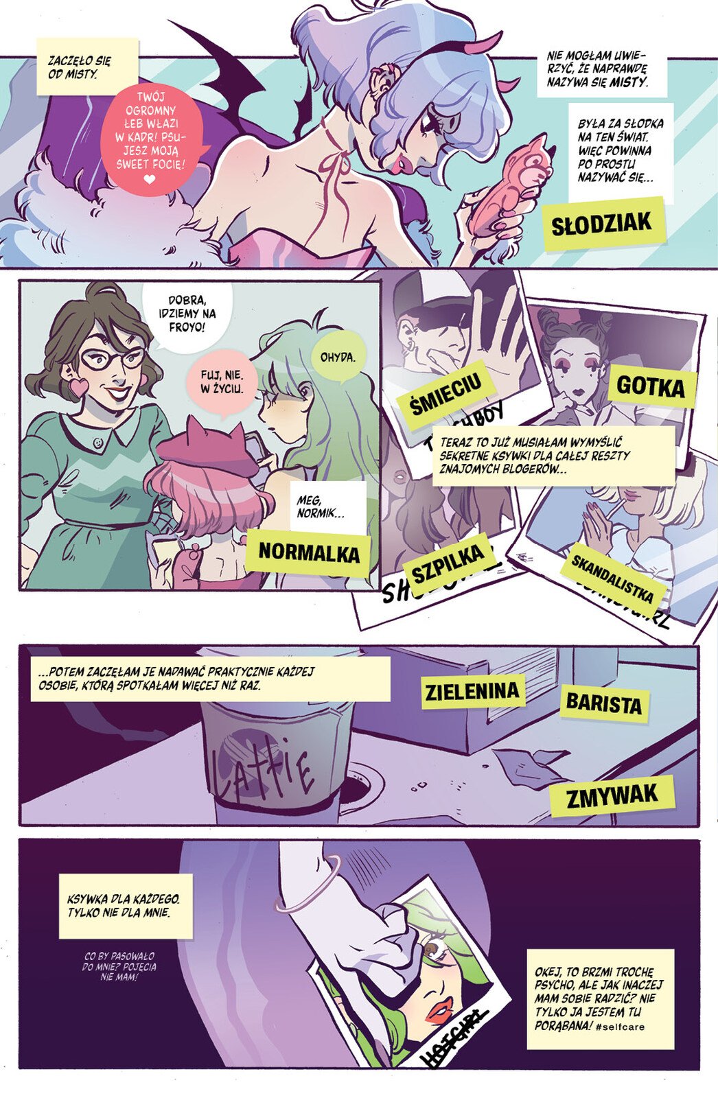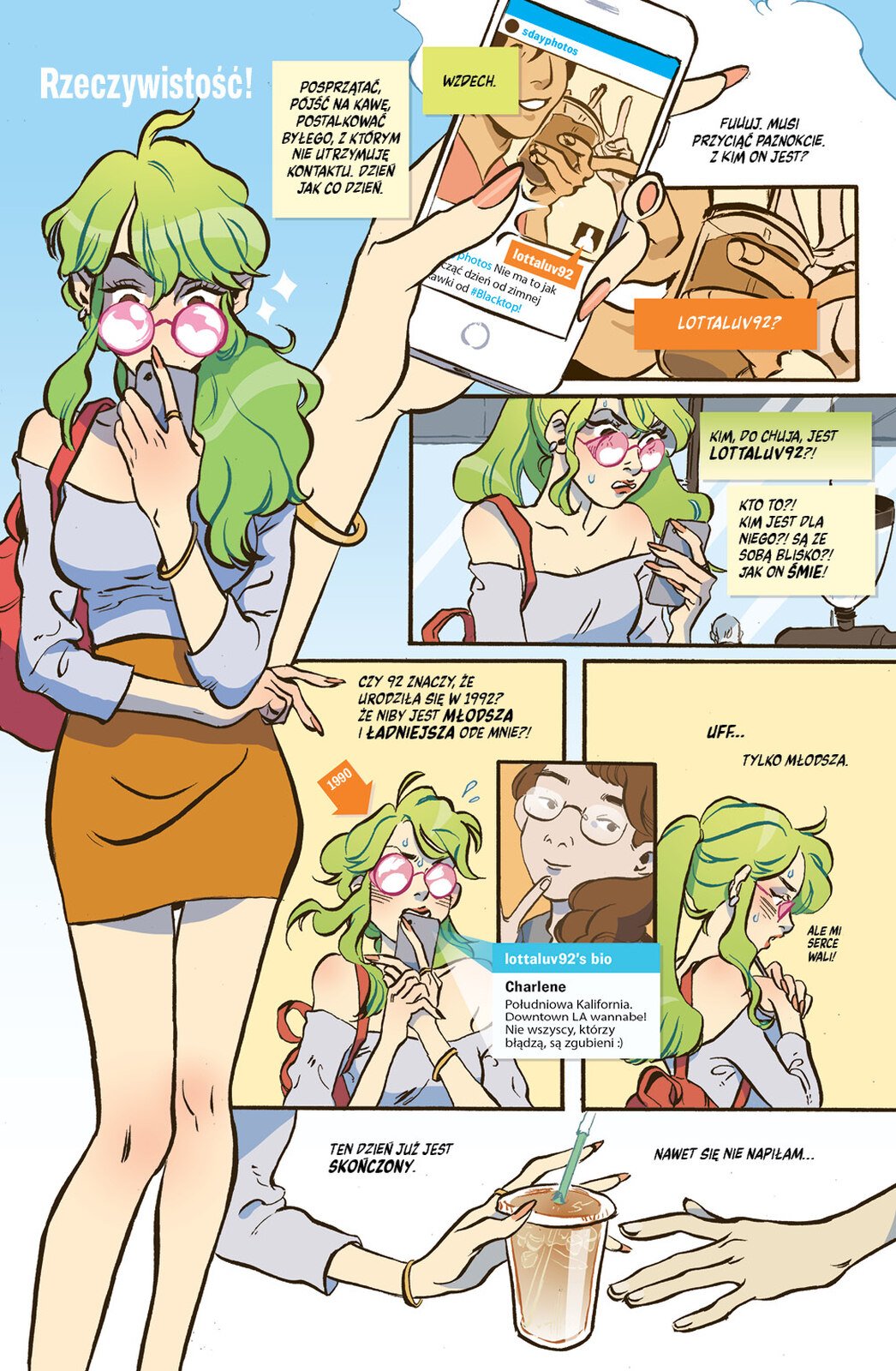 Kim jest Lottie Person? Piękną, kochającą zabawę, żyjącą idealnym życiem zielonowłosą gwiazdą mediów społecznościowych, czy raczej dręczonym alergiami i stresem zasmarkanym kłębkiem nerwów? Makabryczny incydent w klubowej toalecie, stalking, glamour i świat zapośredniczony przez blask ekranów smartfonów – wszystko to w najnowszym komiksie napisanym przez Briana Lee O’Malleya, twórcy nieśmiertelnego Scotta Pilgrima!