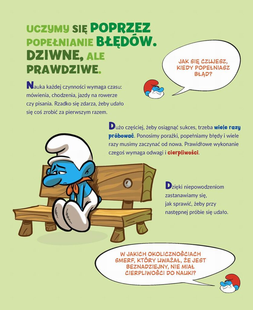 Pewnemu Smerfowi nic nie wychodzi – słabo gra w piłkę nożną, nieładnie maluje, fatalnie gotuje. Zaczyna uważać, że we wszystkim jest beznadziejny… Ale czy przyszło mu do głowy, że aby być w czymś dobrym, na naukę trzeba poświęcić sporo czasu i mieć dużo wytrwałości? Dzięki temu komiksowi przestaniesz się bać, że nie uda ci się czegoś zrobić.