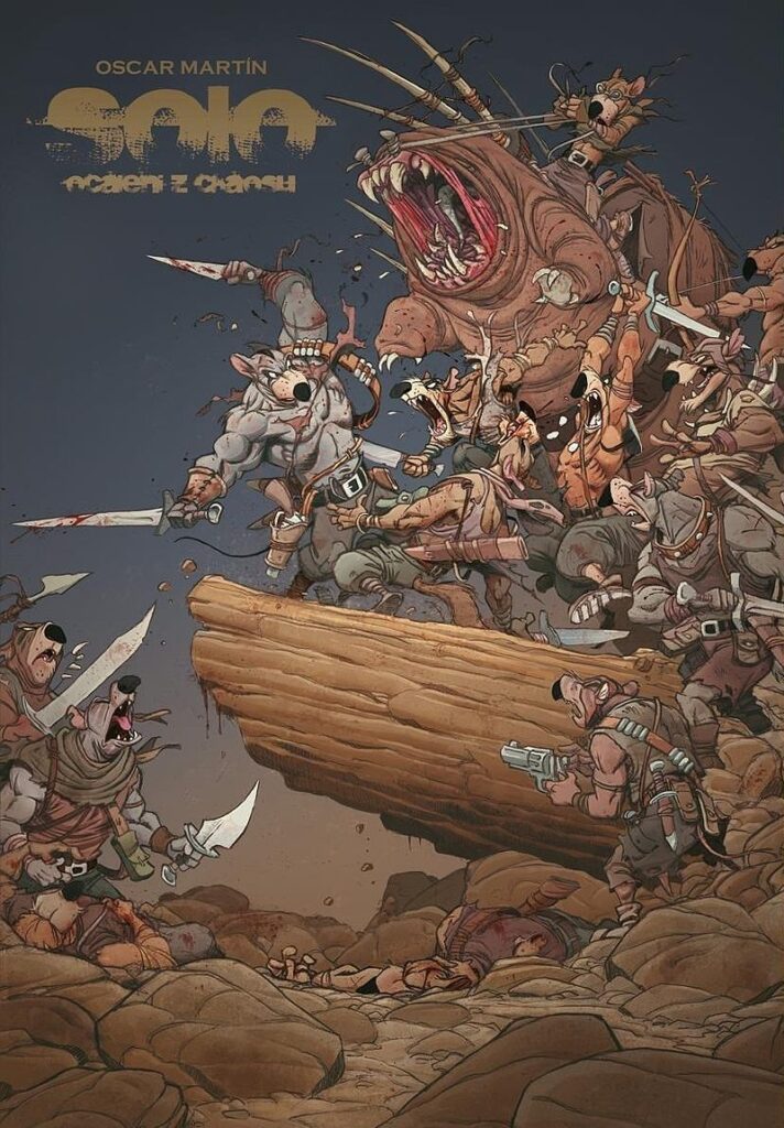 Prequel wielkiego komiksowego przeboju Solo: Świat kanibali. Tym razem Oscar Martín zabiera czytelnika w podróż do przeszłości zmutowanego szczura. Poznajemy jego rodzinę, powód rozpoczęcia samotnej wędrówki oraz wielką miłość. Jednocześnie autor bardzo mocno rozbudowuje postapokaliptyczny świat, po którym tuła się Solo. Dowiadujemy się więcej o resztkach ludzkiej cywilizacji, poznajemy nowe społeczności, a także masę zmutowanych potworów i dziwadeł. Wszystko to pięknie narysowane w charakterystycznym dla Martína kreskówkowym, ale i brutalnym, krwawym stylu. To także, a może przede wszystkim, ujmująca opowieść o rodzinie, o jej wyjątkowym znaczeniu w życiu każdego z nas. Solo, zmutowany szczur filozof i wojownik, powraca w epickiej historii Ocaleni z chaosu, zebranej w całości w tym albumie.