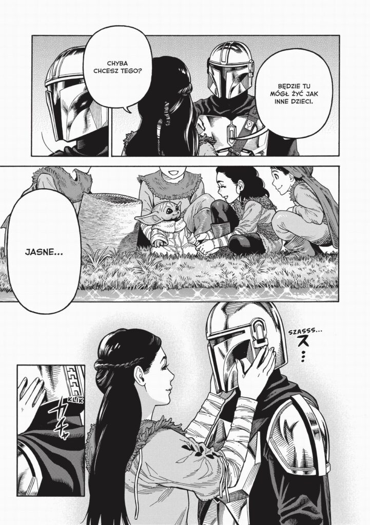 Manga czytana od prawej do lewej. Trzeci tom mangi na podstawie serialu „Mandalorianin”. Nieustraszony mandaloriański łowca nagród sprzeniewierzył się prawom Gildii, żeby uratować Dziecko z rąk niedobitków sił Imperium. Teraz sam jest celem poszukiwań. Ścigany przez niedawnych pracodawców, przenosi się z planety na planetę… W czasie swojej pełnej zasadzek podróży trafia na Sorgan, gdzie razem z weteranką wojsk Rebelii walczy z bandytami nękającymi miejscową osadę. Później z powodu awarii statku ląduje na planecie Tatooine i przemierza pustynne bezdroża, żeby wykonać kolejną misję z nowym wspólnikiem… Niebawem przyjmuje od dawnego znajomego zlecenie uwolnienia tajemniczego zakładnika. To nie będzie łatwe zadanie…