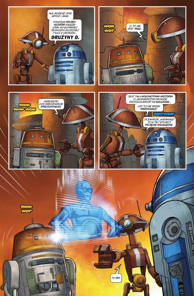 Straszliwa Plaga dopada droidy we wszystkich częściach kosmosu. Aby walczyć z tym zagrożeniem i ratować swojego najlepszego przyjaciela C-3PO, R2-D2 musi zebrać grupę bohaterskich robotów – Drużynę D! To przygoda pełna gościnnych występów gwiazd z całej galaktyki, pojawia się nawet Chopper z „Rebeliantów”! Zobacz pojedynek Artoo z morderczym BT-1 i walkę psychotycznego 0-0-0 z łowcą nagród IG-88! Powraca także QT-KT! A gdy misja prowadzi Drużynę D do pałacu Jabby, nasi bohaterowie ścierają się ze złowrogim droidem nadzorującym EV-9D9. Czy podróż Artoo doprowadzi tylko do rzezi i zniszczenia? A może srebrno-niebieski astromech znajdzie też miłość?