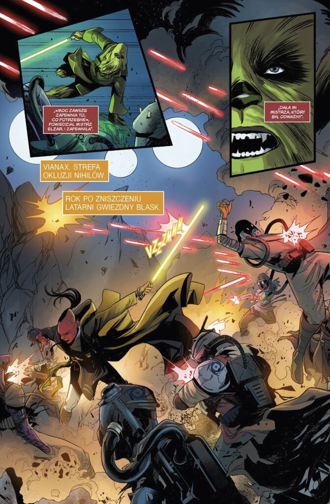 Miecze świetlne krzyżują się, gdy Keeve Trennis w końcu odnajduje to, czego szukała w Strefie Okluzji Nihilów. Jaką tajemnicę skrywają starożytne ruiny? Czy Keeve może zaufać swojej dawnej przeciwniczce, Lournie Dee, gdy ta okazuje się jej ostatnią nadzieją? Najgłębsze lęki Jedi przybierają realną postać, kiedy z przeszłości powraca ktoś niespodziewany. Keeve zbiera drużynę złożoną z wyczerpanych walką Jedi, piratów i wędrowców. Ale jak długo pozostaną zjednoczeni, zanim uderzą w nich Dzieci Burzy? A to nie wszystko! Na scenę wkracza minister rozwoju Nihilów – Baron Boolan. Ponadto w tomie: Kelnacca – władający mieczem świetlnym Wookiee, znany z przebojowego serialu Disney+ „Akolita”. To jego komiksowy debiut!