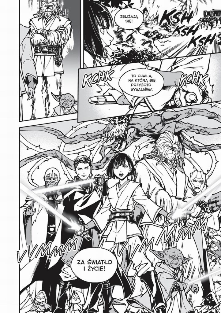 Manga czytana od lewej do prawej. Trzeci tom opowieści o losach bohaterów okresu Wielkiej Republiki. W galaktyce nastał mroczny i niebezpieczny czas. Jedi oraz Wielka Republika muszą się zmierzyć z największymi jak dotąd wyzwaniami… Zniszczenie Latarni Gwiezdny Blask zburzyło także pokój chroniony wcześniej przez wielkich Jedi z tamtej epoki. Przez rok, który upłynął, odkąd rycerka Jedi Lily Tora-Asi nie wykonała rozkazu Rady, żeby wrócić na Coruscant, Nihilowie kontynuowali podbój galaktyki, rozszerzając swoje terytorium na Zewnętrznych Rubieżach. Pomimo zbliżającego się Wału Burzowego Lily wytrwała na swojej pozycji i odtworzyła świątynię Jedi na Banchii. Ta planeta nie zostanie porzucona, a jej tajemnice zaczynają się ujawniać, gdy mistrz Jedi Arkoff powraca, aby połączyć w całość fragmenty dawno pogrzebanego sekretu.
