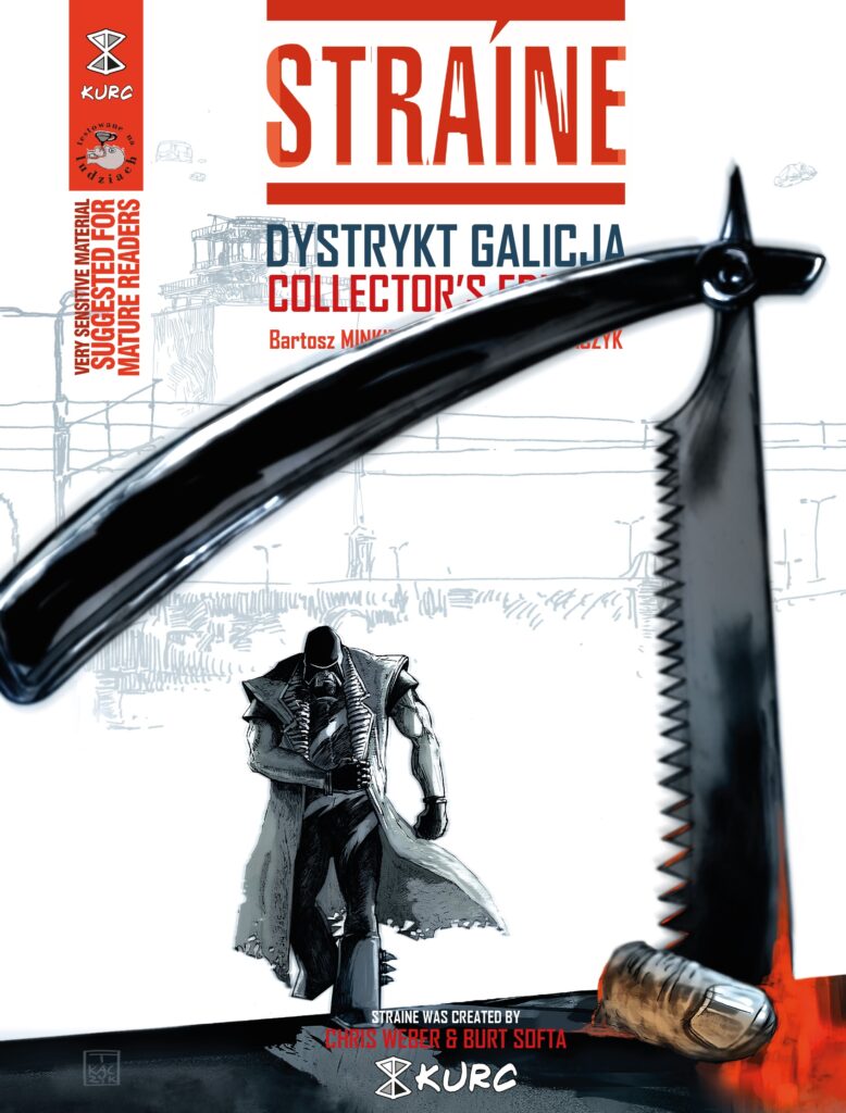 Komiks został wydany z trzema okładkami. Najlepsza jest ta monochromatyczna ze Strainem i brzytwą. Ponadto skrywa ultra tajne zapiski i dodatki. Bonusy.