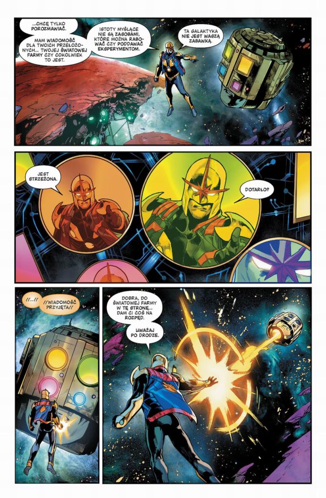 Byli żołnierzami, wyrzutkami, najemnikami, złodziejami i rodziną. Byli bohaterami, ale czasy się zmieniły. Kosmos potrzebuje już nie bohaterów, tylko… superbohaterów! Bez względu na to, czy ich pomocy wymaga grupa zaginionych odkrywców, czy sam cesarz Hulkling, Strażnicy odpowiadają. Tym razem, badając prastary kult ognia, wpadną na trop potężnej istoty, która czarami zapragnęła podbić wszechświat. Na szczęście mogą liczyć na wsparcie mutantów z kosmicznej stacji SWORD, a także Cable’a, który powraca do gry uzbrojony po zęby. Czy to wystarczy, by powstrzymać ostatnią anihilację?