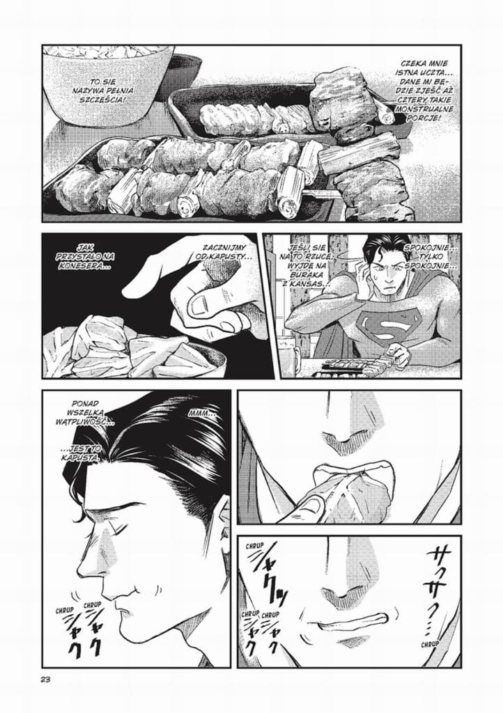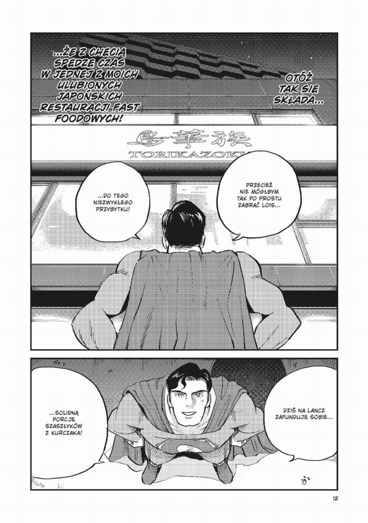 Superman, najsilniejszy superbohater na świecie, na co dzień dzielnie staje w obronie sprawiedliwości. W chwilach wolnych natomiast najchętniej wybiera się do… japońskich fast foodowych restauracji, by kosztować tamtejszych specjałów. Gdy w jego superbrzuchu rozlega się burczenie, to znak, że musi niezwłocznie udać się do Kraju Kwitnącej Wiśni, by doświadczyć kolejnej eksplozji smaków! Przed wami kulinarne podróże superfana japońskiej kuchni!