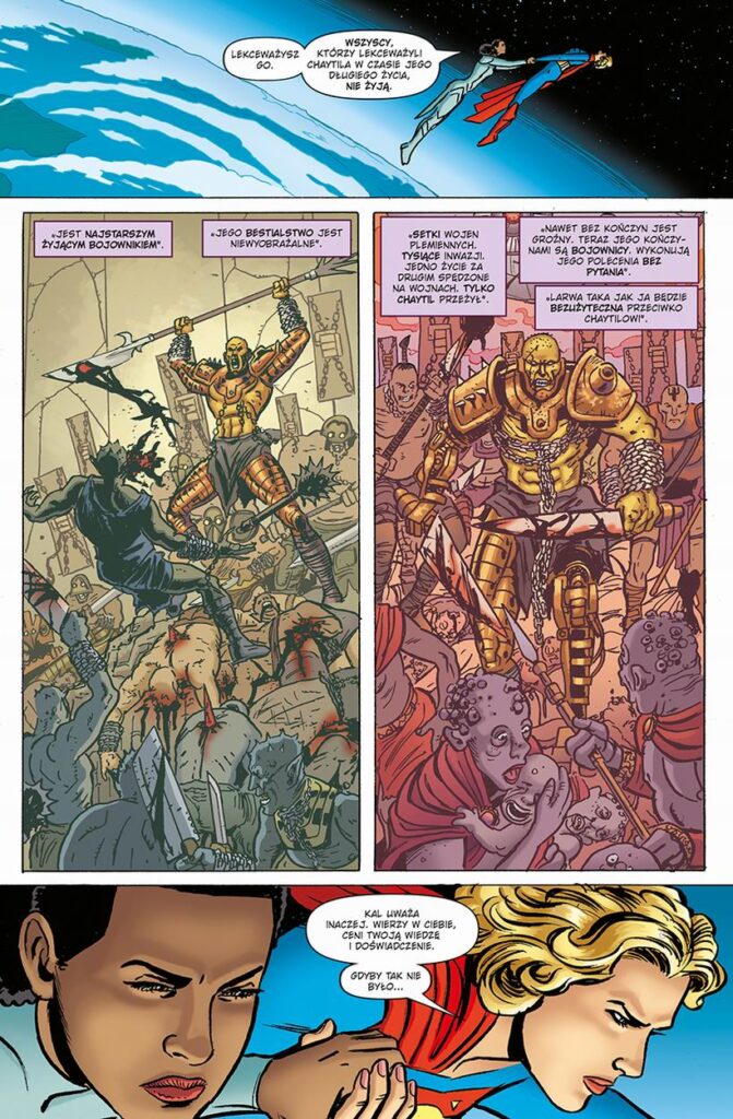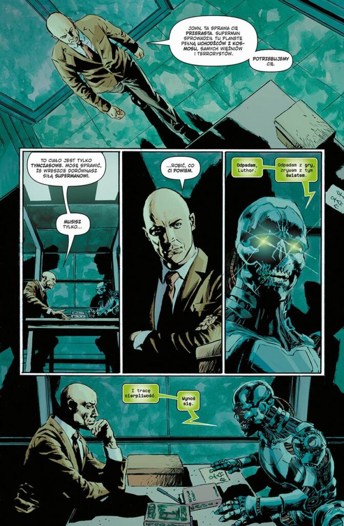 Po heroicznej rewolucji, której przewodził na Świecie Wojny, Człowiek ze Stali powraca na Ziemię silniejszy niż kiedykolwiek! Kiedy on i Steel łączą siły, by uczynić Metropolis prawdziwym Miastem Jutra, na horyzoncie pojawiają się dwaj dobrze znani Supermanowi łotrzy… i mają własne plany. Ponadto Kal-El spotyka się z Mrocznym Rycerzem, Jimmym Olsenem oraz Ligą Sprawiedliwości. Jon Kent cieszy się z powrotu ojca, jednak jego radość nie trwa zbyt długo, ponieważ chłopak staje się celem tajemniczego Red Sina, zdolnego do niemożliwego: zranienia obu Supermanów! Wszystkie te wydarzenia prowadzą do tajemniczego Projektu „Zamroczenie””, który odmieni życie Supermana na zawsze!