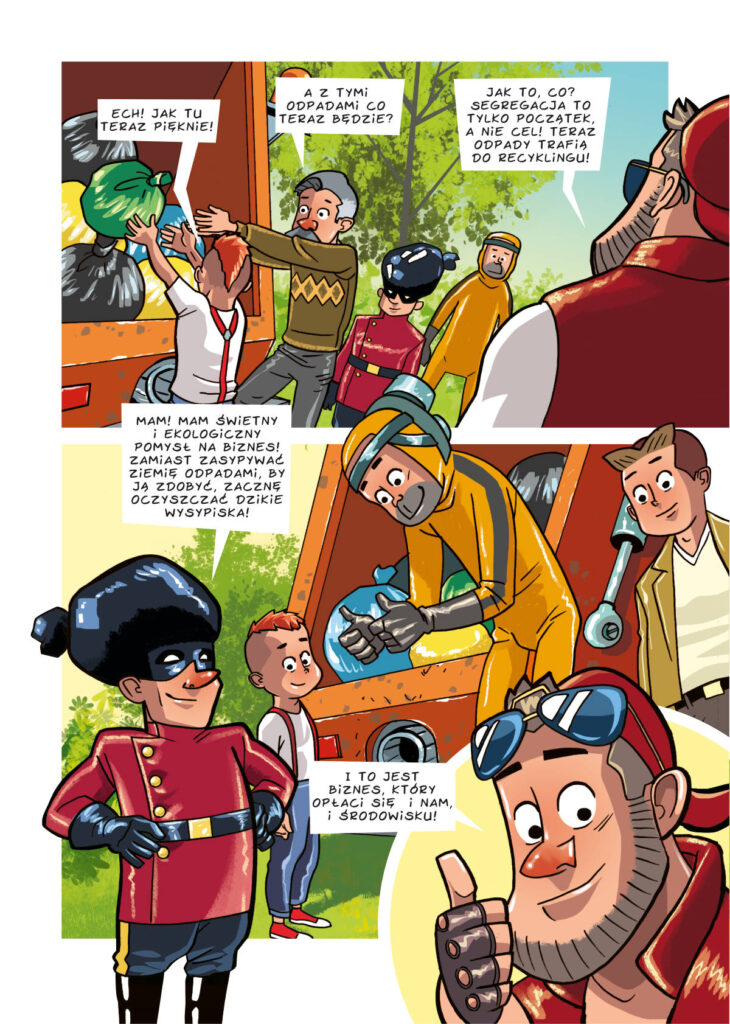 Dwóch dzielnych chłopców rozwiązuje zagadkę znikających śmieci. W komiksie poruszony został tak ważny temat jak prawidłowa segregacja i składowanie śmieci.