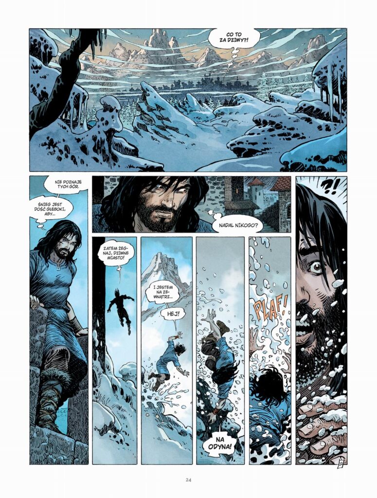 Thorgal kolejny raz opuszcza rodzinę, aby uchronić ją przed przekleństwem zesłanym przez bogów. Kiedy przemierza świat, jego żonę odwiedza dawny przyjaciel. Co się kryje za jego przybyciem?… Tymczasem wiking trafia do niezwykłego miasta Prokleta, które co noc zmienia swoje położenie. Co gorsza, Ruchomym Miastem rządzi bezwzględny tyran, a na życie Thorgala dybie pewna żądna zemsty dziewczyna. Czy bohaterowi uda się wydostać z tej piekielnej pułapki?