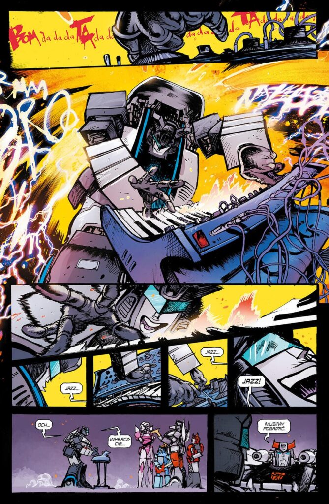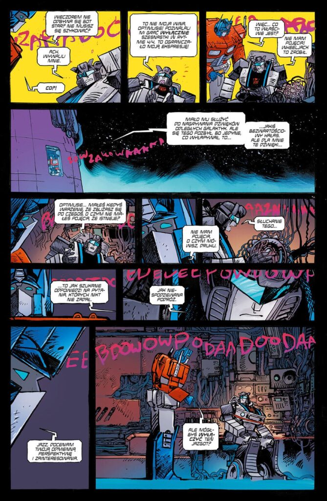 Czwarty tom serii Transformers to niesamowicie epicki finał, który łączy wszystkie wątki z trzech poprzednich tomów. Mamy tu ogromną rozwałkę między Autobotami a Deceptikonami, ale nie brakuje też chwil wzruszeń, zdrad i pożegnań, które dodają historii odrobinę głębi. Wątki przeplatają się dynamicznie, jest chaos, ale kontrolowany. Naprawdę wszystko tu się ładnie spina. Fani serii znajdą mnóstwo smaczków i nawiązań do klasycznych historii, co jest dużym plusem. Do akcji wkraczają też ludzie, tego brakowało trochę w poprzednich tomach i na to też narzekałem wcześniej. Tutaj wreszcie czuć stawkę!