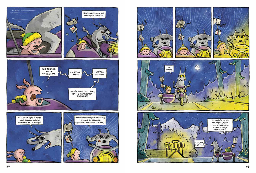 Chory królik przeszedł już wiele, na dodatek wlecze ze sobą ciężką i niewygodną kroplówkę oraz metrowy harmonogram przyjmowania leków. A teraz jeszcze natknął się na wilka! Tyle że ten wydaje się jakiś… inny. I wygląda na to, że doskonale wie, co robi.