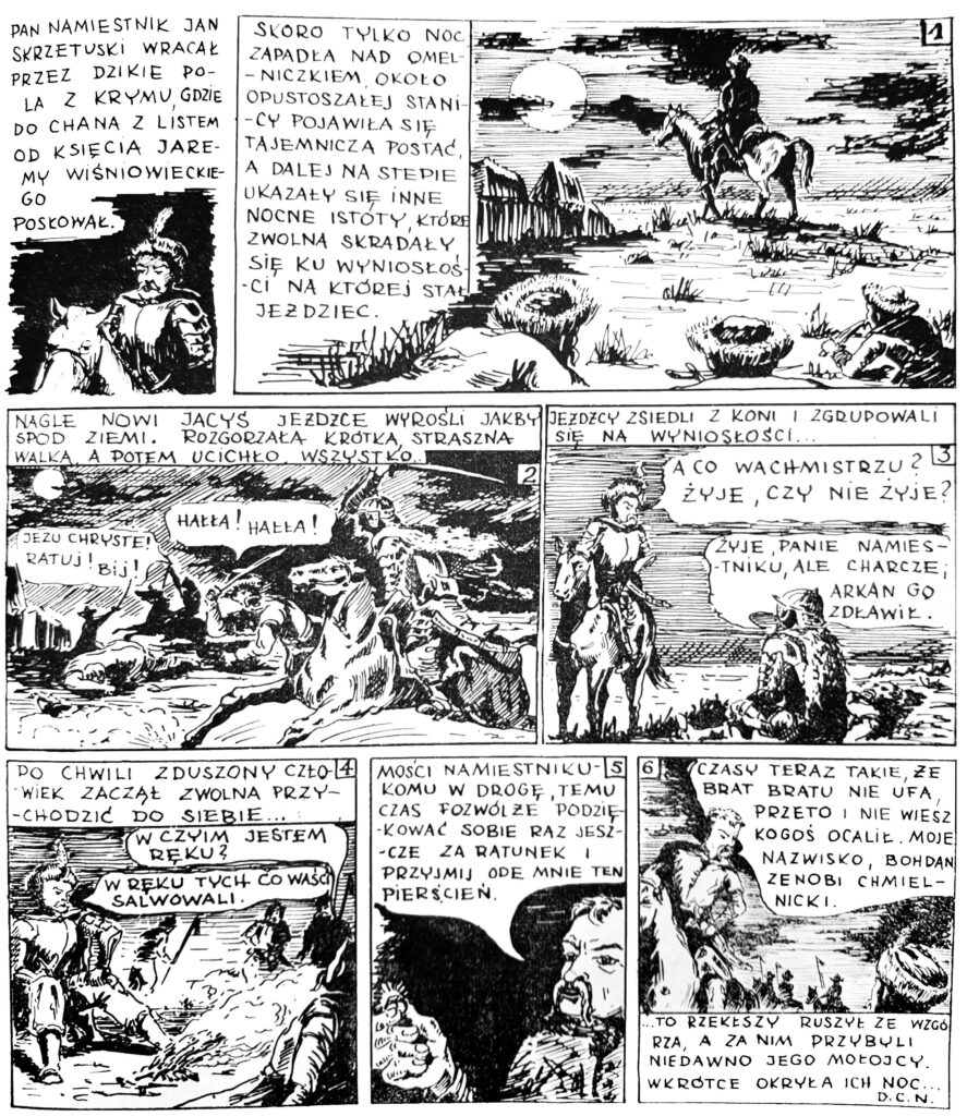 - „Ogniem i Mieczem” (tylko tom pierwszy) drukowany w gazecie „Zorza Świąteczna” w latach 50-tych ubiegłego wieku, narysowany przez Jerzego Blancarda,