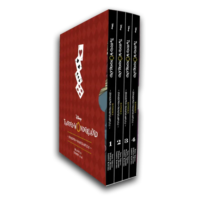 Pakiet z 4 tomami mangi czytanej od prawej do lewej o niezwykłych przygodach nastolatka w magicznym świecie o nazwie Twisted Wonderland.