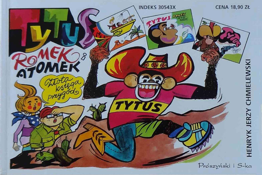 Długo oczekiwany wybór najwspanialszych przygód Tytusa, Romka i A’Tomka – 3 dawno nie wznawiane, legendarne już książeczki w jednym tomie: V – Podróż do ćwierć koła świata, VII – Tytus poprawia dwójkę z geografii, IX – Tytus na Dzikim Zachodzie, którym towarzyszą przezabawne, ilustrowane teksty Papcia Chmiela.