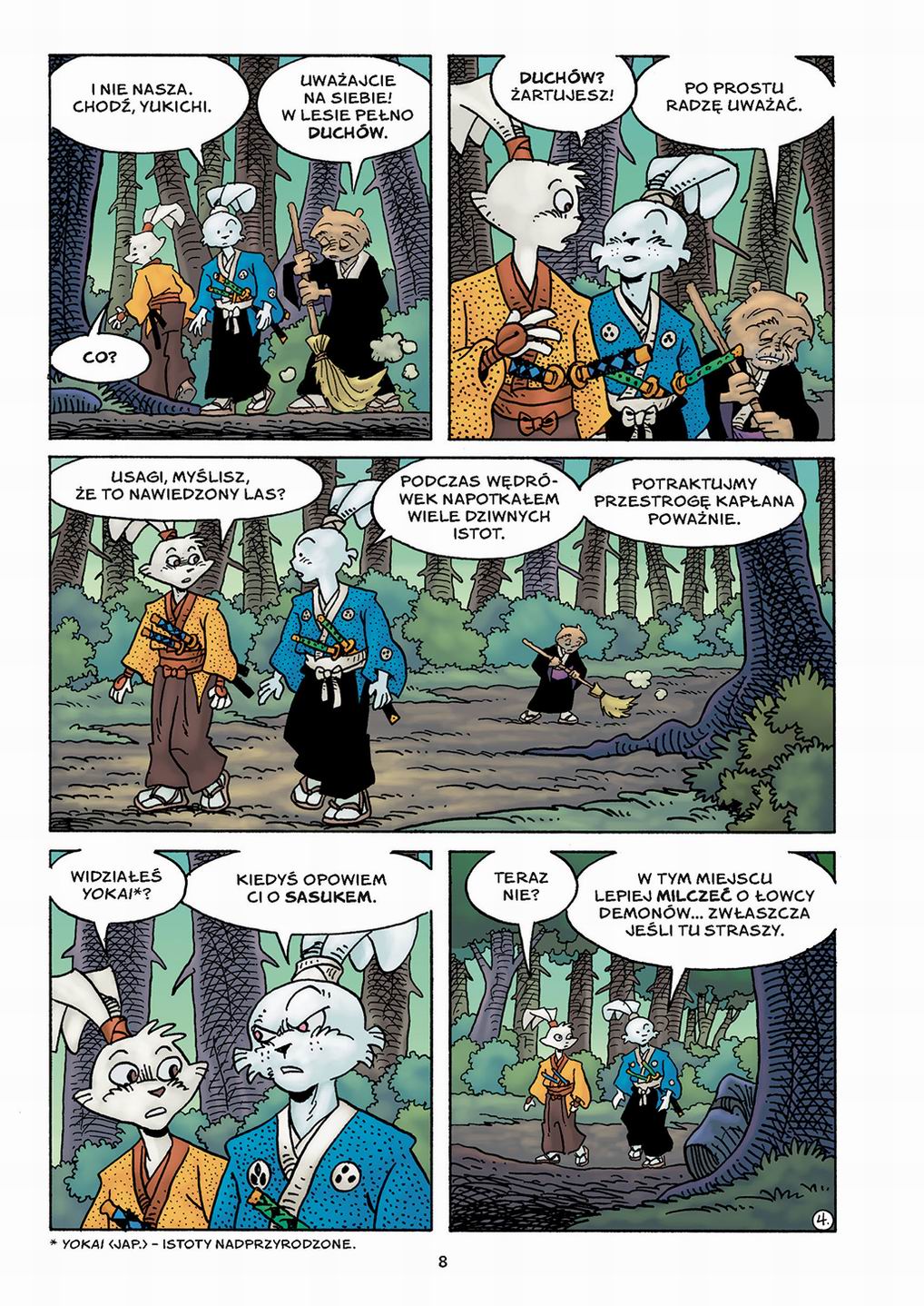 Ciąg dalszy popularnej sagi Stana Sakaiego o przygodach królika ronina Usagiego – w kolorze! Usagi i jego młody krewniak Yukichi wędrują po Japonii w poszukiwaniu kolejnych przygód. W „Opowieści o duchach” dwaj roninowie spotykają młodą kobietę, Shizuye, modlącą się przed ołtarzykiem upamiętniającym dziewczynę zamordowaną dawno temu przez żonatego kochanka. Shizuye znalazła się w podobnej sytuacji i dwaj roninowie postanawiają ją chronić. Lecz pozory mylą, a bohaterowie słyszą od lokalnego kapłana ostrzeżenie, że w okolicy straszy!