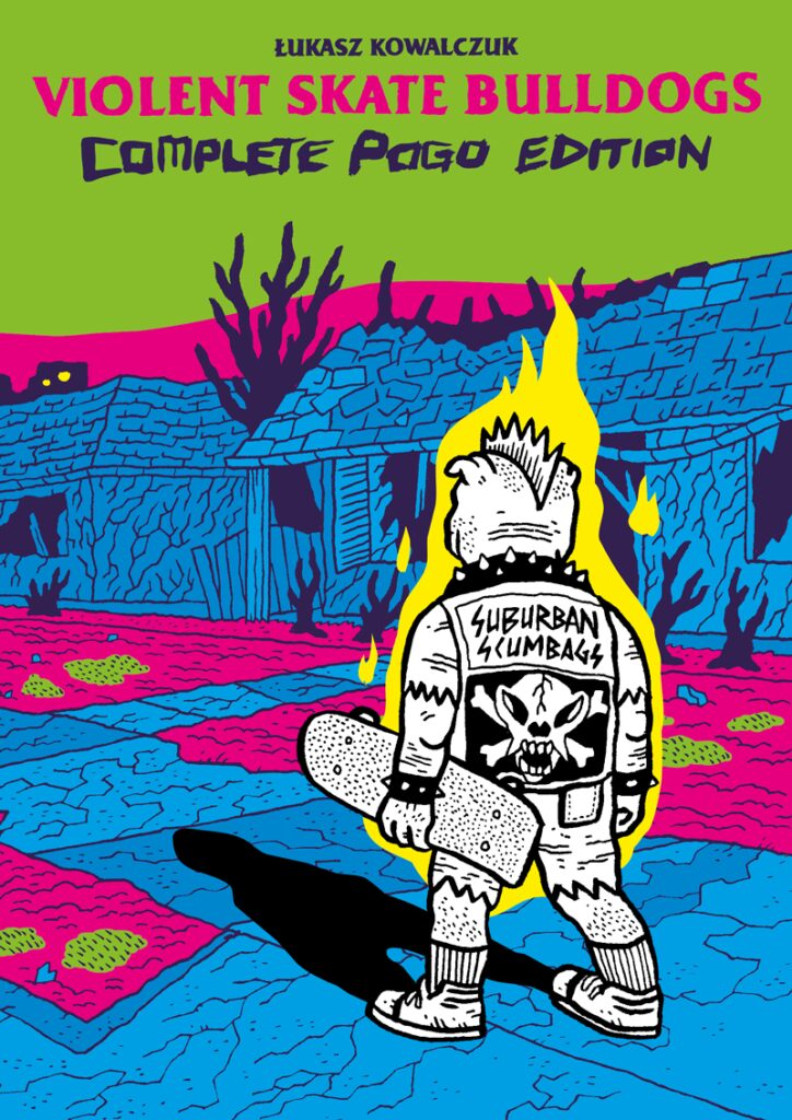 Violent Skate Bulldogs to zbiór krótkich historyjek, które ukazały się w 2014 na łamach Dizaster Mag, Mydła oraz Chaosu w Mojej Głowie, uzupełniony o premierowy materiał oraz prace, które narysowali zaprzyjaźnieni twórcy (Maciek Misiewicz, Paweł Mączewski, Janusz Bęben, Bill Hauser).