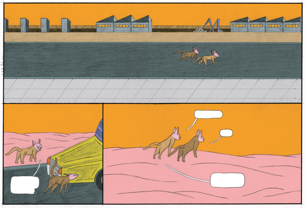 Komiks jest spin-offem czwartego rozdziału powieści graficznej Promienie Xi. Dwójka psokotów próbuje odkryć tajemnice stożków z piasku, brył platońskich i pewnej ludzkiej pary, która nie to, że wpatruje się w gwiazdy to jeszcze walczy ze sobą na środku pustyni.
