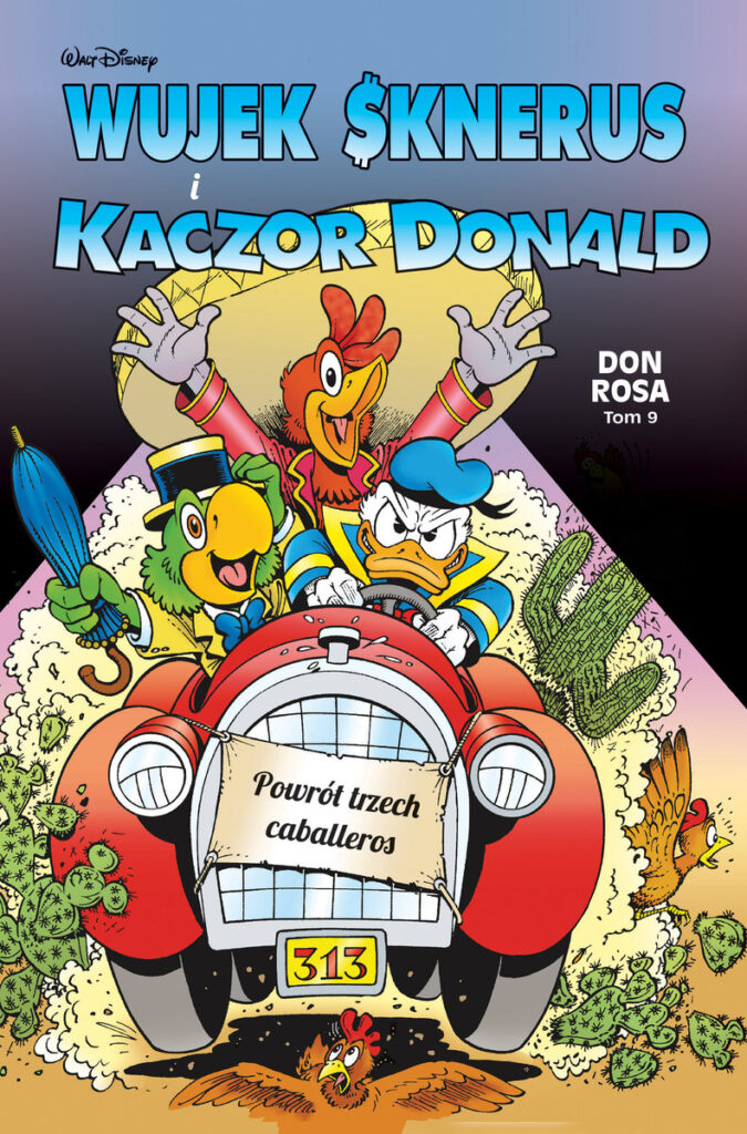 „Kaczor Donald wcale nie chciał znaleźć się w rozpędzonym meksykańskim pociągu bez maszynisty ani toczyć nierównej walki z bandziorem zwanym Złotym Kapeluszem. Ale kiedy w grę wchodzi fortuna w srebrze, a u boku Donalda stoją nieustraszeni amigos José Carioca i Panchito, nierówna walka staje się równiejsza! Między innymi o tej walce opowiada tytułowy komiks o trzech caballeros, ale to dopiero początek! W „Meandrach architektury” Dziadek Be znajduje oryginalne plany skarbca Sknerusa, a w historii „Każda różdżka ma dwa końce” Magika de Czar rzuca bardzo groźne zaklęcie na umysły Sknerusa i Donalda. Te historietas excelentes („doskonałe komiksy” – tłumaczymy na wypadek, gdyś nie był caballero) wreszcie doczekały się wznowień w oszałamiających kolorach oraz z prawdziwym skarbcem komentarzy i zakulisowych ciekawostek opisanych przez samego Dona Rosę.
