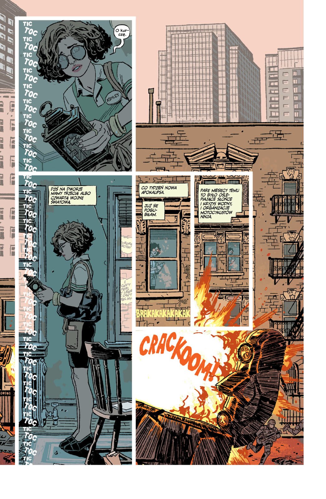 W tłumie w dzielnicy czerwonych latarni możecie spotkać prawdziwych jaskiniowców, średniowiecznych rycerzy i żołnierzy-cyborgów na przepustce z Czwartej Wojny Światowej. Zaspani ludzie, dojeżdżający do pracy, wpadają w pętle czasu, są atakowani przez wersje samych siebie z alternatywnych rzeczywistości i próbują unikać postapokaliptycznych pustyń. Komiks o ludziach w kryzysie, którzy próbują nie zwariować, gdy otaczający ich świat wali się sekunda po szalonej sekundzie.
