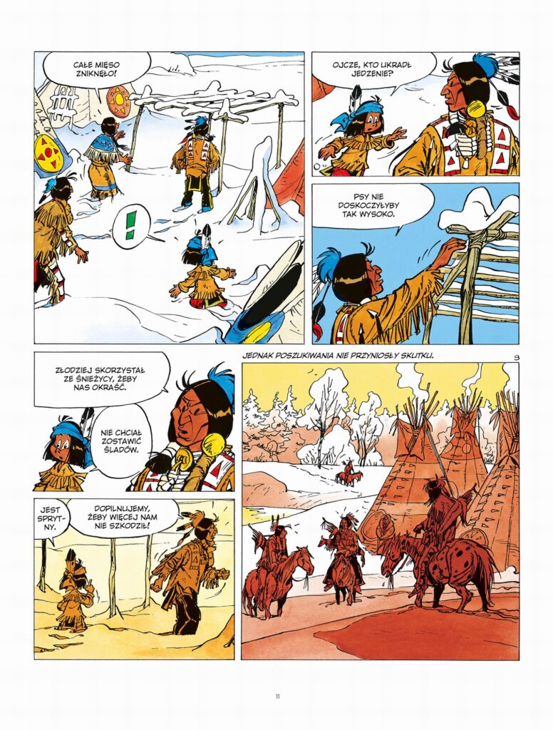 Dwudziesty tom przygodowej opowieści dla dzieci o znającym język zwierząt małym Indianinie Yakarim i jego dzielnym koniku Małym Piorunie. W środku zimy Siuksom kończą się zapasy jedzenia, a w dodatku ktoś kradnie im mięso upolowanego jelenia. Myśliwi wyruszają na poszukiwanie złodzieja, ale ten okazuje się od nich sprytniejszy. Czy to niedźwiedź? Yakari i Mały Piorun postanawiają samodzielnie poznać prawdę o tajemniczym przeciwniku. Czeka ich niebezpieczna przygoda, na szczęście mają w lesie wiernych przyjaciół, którym też nie podoba się obecność groźnego obcego stwora!