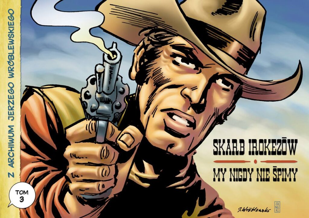 „My nigdy nie śpimy” (na podstawie scenariusza Andrzeja Janickiego) to natomiast komiks premierowy. Ostatni, nad którym pracował Jerzy Wróblewski i którego rysowanie przerwała przedwczesna śmierć artysty. Komiks ten miał być częścią gazety komiksowej, którą planowali tworzyć na początku lat 90. bydgoscy autorzy komiksów. – Chcieliśmy zaangażować do tego pomysłu, tych polskich rysowników, których wówczas znaliśmy. Ja zebrałem jakieś materiały o Agencji Pinkertona i to zainspirowało mnie do napisania scenariusza, specjalnie dla Jerzego Wróblewskiego. Poszedłem z tym do niego, żeby przekonać go, do tego projektu. Zgodził się na współpracę bez szczególnych zastrzeżeń. Namawiałem go, żeby zrobić ten komiks bardziej w stylu spaghetti-westernów – czyli długie płaszcze, brudne stroje i zarośnięte twarze, bez białych koszul, dopasowanych, czarnych kamizelek i ślicznych kapeluszy. Zgodził się na taką wizję bez wahania – wspomina Janicki.