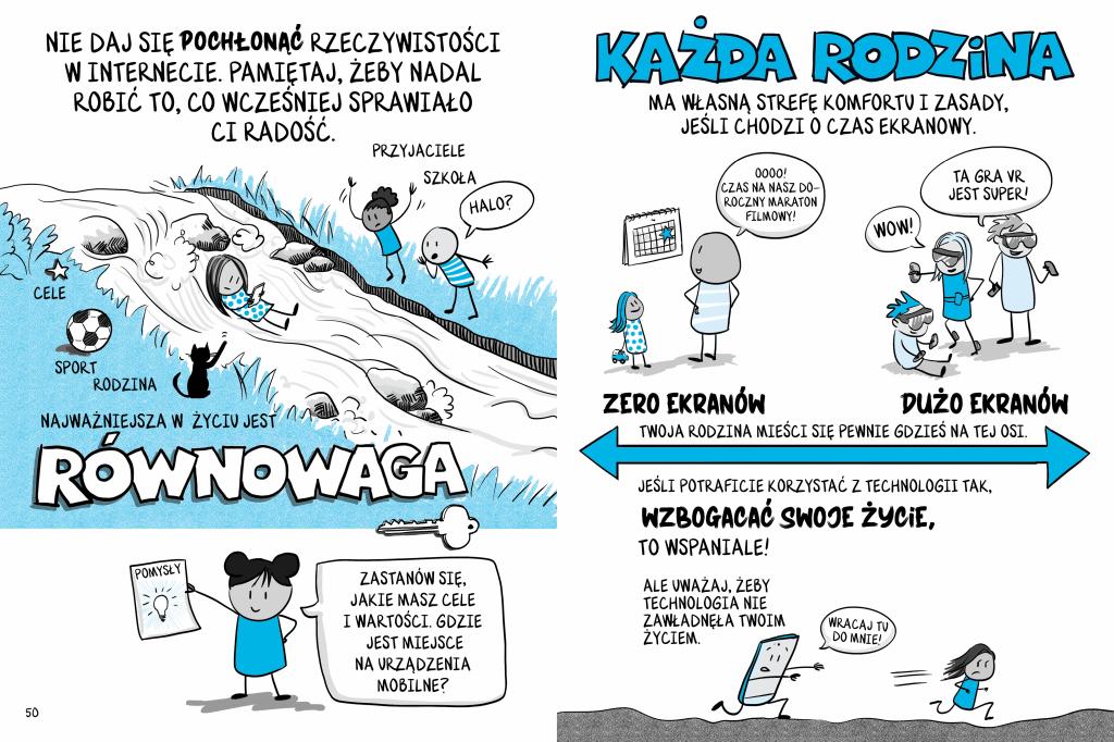 Nowa książka Rachel Brian, autorki bestsellerowych Zgadzam się albo i nie oraz Martw się mniej, to komiksowy podręcznik dla dzieci, który w prosty i humorystyczny sposób wyjaśnia, jak mądrze korzystać z telefonu i internetu.