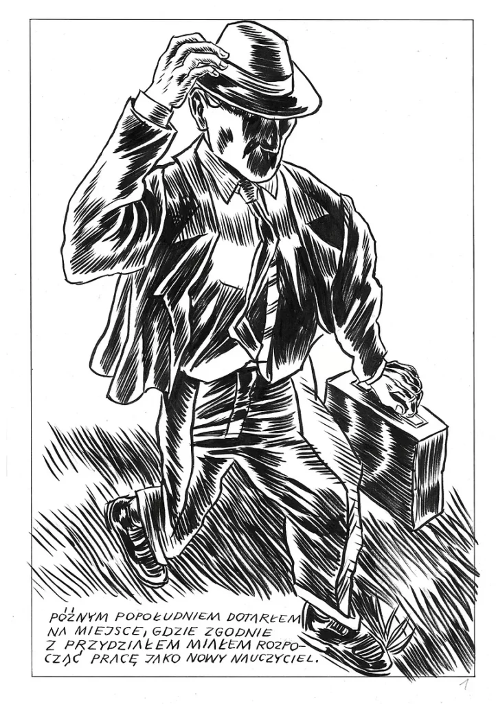 To jego przyjście na prowincję zwiastowała orkiestra dęta. Nie milkną pierwsze konwenanse, a tu festyn z kopyta rwie. Przy wtórze trąb złamana trzaska pieczęć, której już nie skleisz, nawet na słowo honoru, nawet na tę ślinę, co w kąciku ust zawadiacko podryguje. Chodź a patrzaj, jak świat zalewa feria twarzy, imion, intencji. To w jego obronę uciekają się. A on, ze słowiańską swadą, jak nie ryknie – hajże na Soplicę! …Żubrówkę! …Finlandię! …co tam się nawinie. Tylko w głowie mętlik, aż po prawdzie sam nie wie, czy na koniec to z aniołem czy z nierządnicą babilońską te rozmowy o wszystkim, żeby jutro nie rozmawiać o niczym.