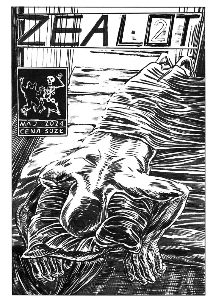 Patrzcie go, huncwota! Leży teraz jak ten Jezus z obrazu Mantegni, tyle że odwrócony, bo i nie cierpi za miliony, a sam sobie niecny los zgotował.