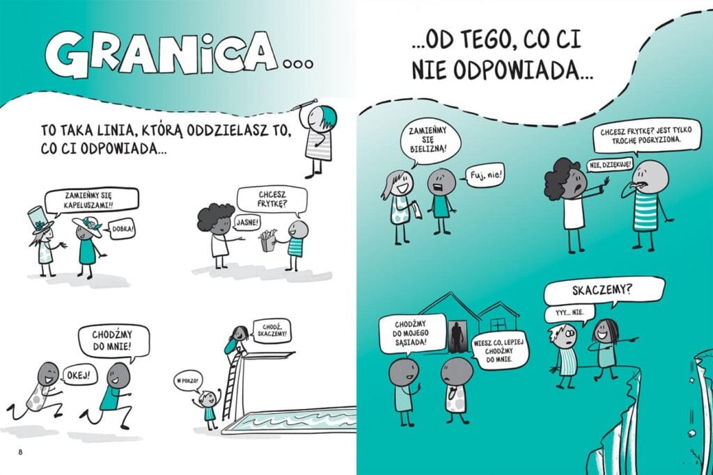 Komiksowy podręcznik dla dzieci, który w prosty i humorystyczny sposób wyjaśnia, co to są granice i jak je stawiać, okazując szacunek sobie i innym.