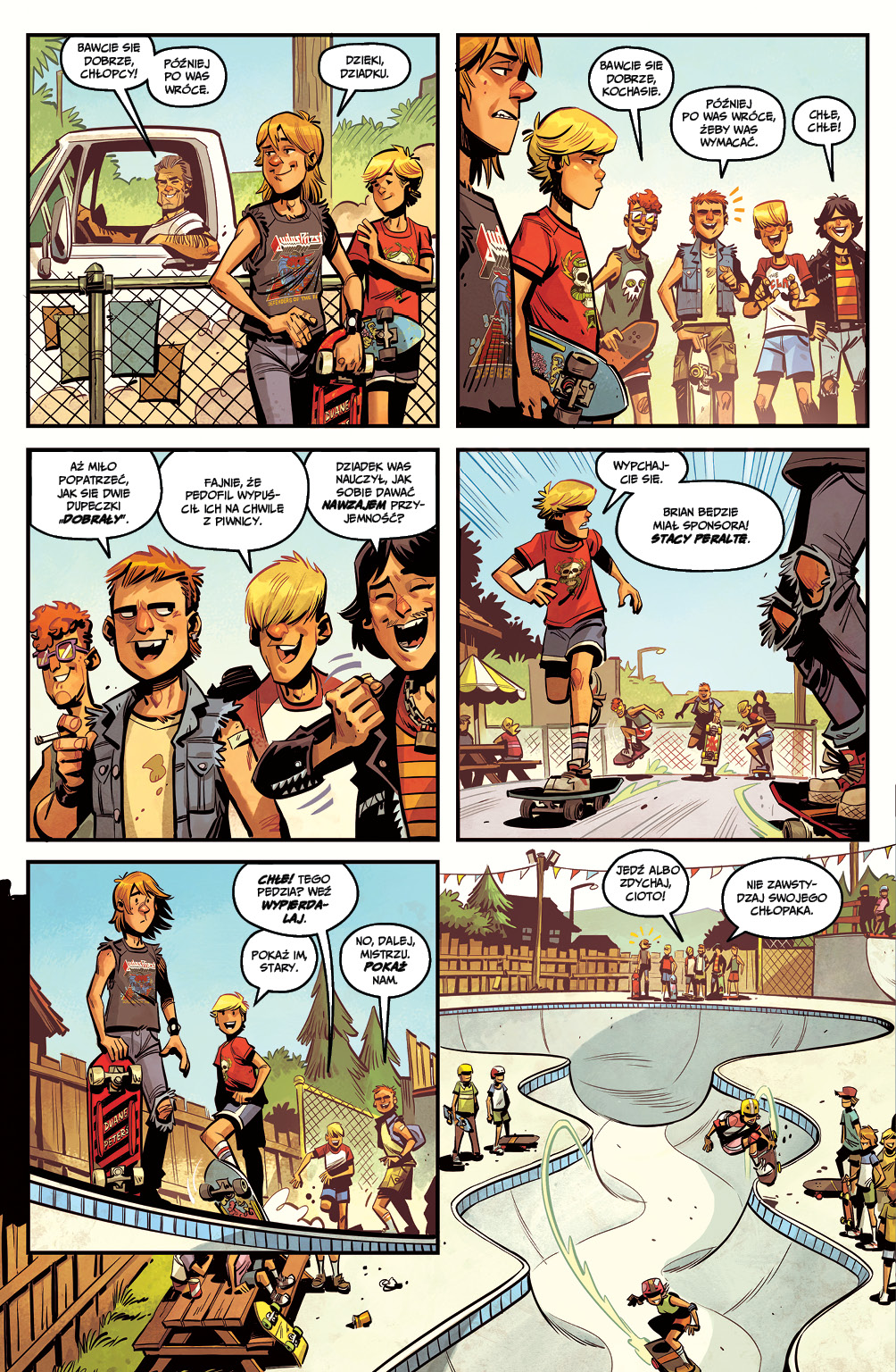 Skąpane w słońcu przedmieścia Sacramento 1984 roku. Grupa dzieciaków szuka bezpiecznego azylu w deskorolce, punk rocku i thrash metalu. Szczera, zabawna, momentami brutalna i w dużej mierze autobiograficzna opowieść napisana przez niezawodnego Ricka Remendera, autora takich hitów jak Deadly Class czy Tokyo Ghost.