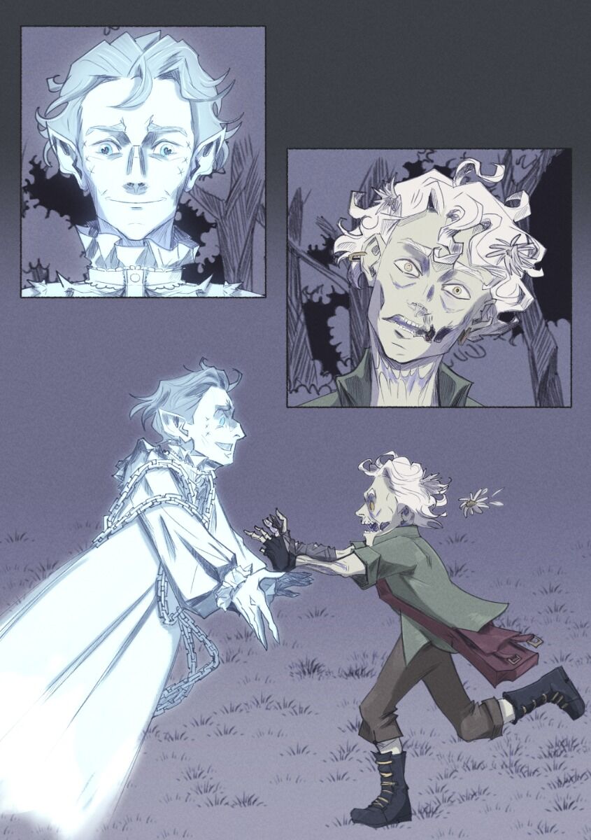 Z okazji Halloween chciałem narysować głównych bohaterów z komiksu Wayfarers: Enchanted Realms* w straszniejszej wersji, jako ducha i zombie. W trakcie pracy nad ilustracjami pojawił się pomysł na krótki komiks z postaciami w takiej odsłonie. Nie wyszło bardzo strasznie. Chyba że ktoś boi się szczurów. *Historia tu przedstawiona nie łączy się z komiksem Wayfarers: Enchanted Realms i może być czytana jako oddzielna opowieść.