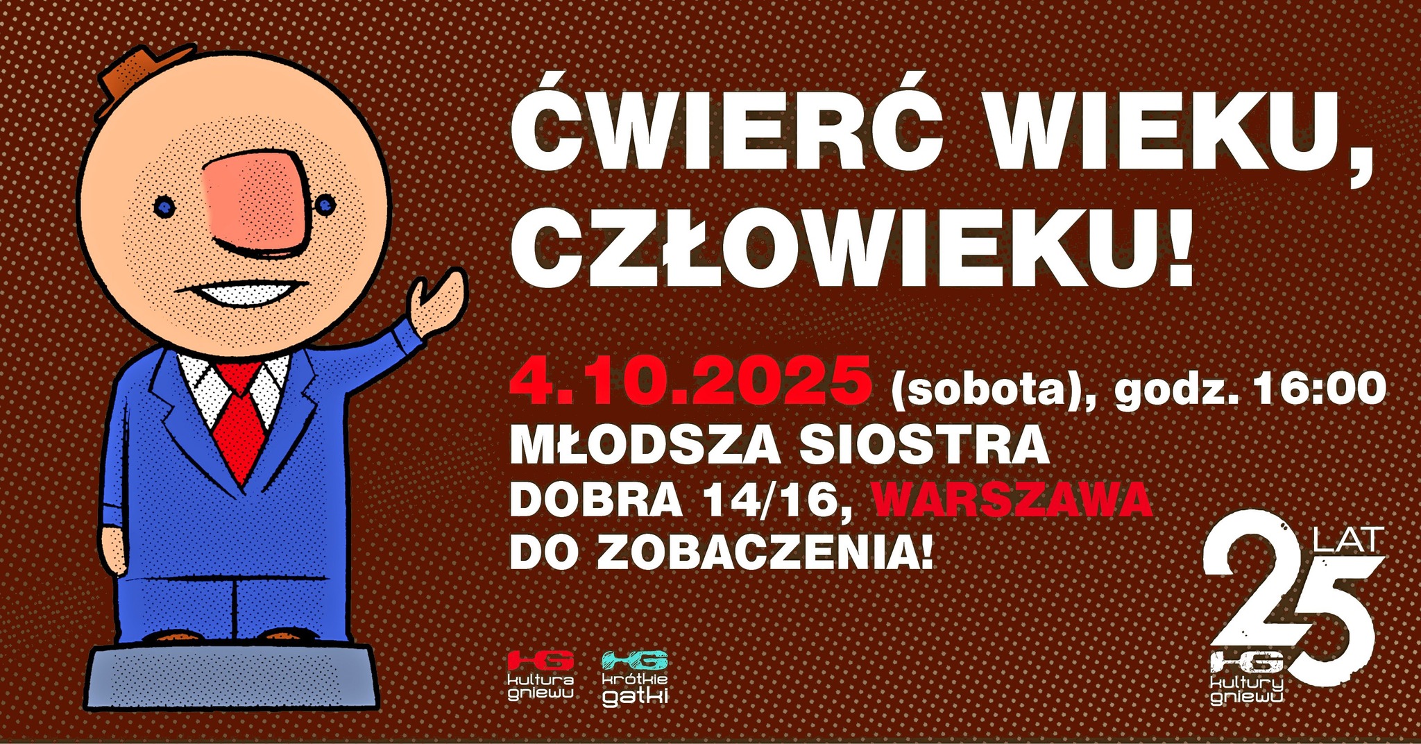 Klubojadalnia Młodsza Siostra wraz z Kulturą Gniewu zapraszają na obchody 25 rocznicy istnienia wydawnictwa. Start o godz. 16:00, wstęp wolny!