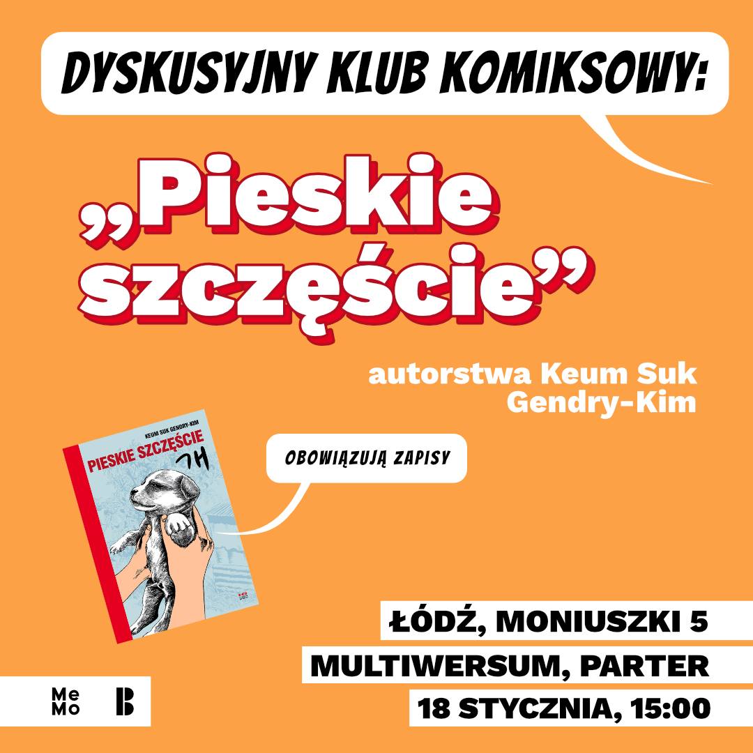 Dyskusyjny Klub Komiksowy przy Mediatece MeMo zaprasza na kolejne spotkanie, którego tematem będzie mahwa Pieskie szczęście autorstwa Keum Suk Gendry-Kim. Start o godz. 15:00. Wstęp wolny ale obowiązują zapisy.