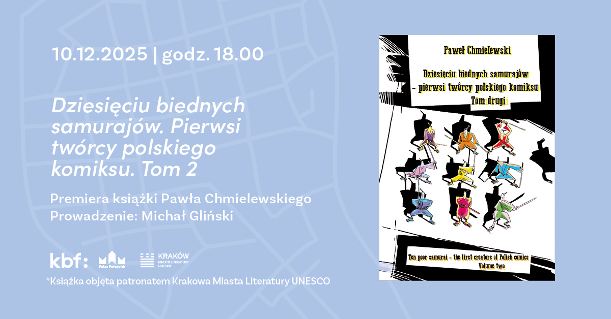 Pałac Potockich zaprasza na spotkanie z Pawłem Chmielewskim autorem książki Dziesięciu biednych samurajów – pierwsi twórcy polskiego komiksu, tom 2. Start o godz. 18:00, wstęp wolny.