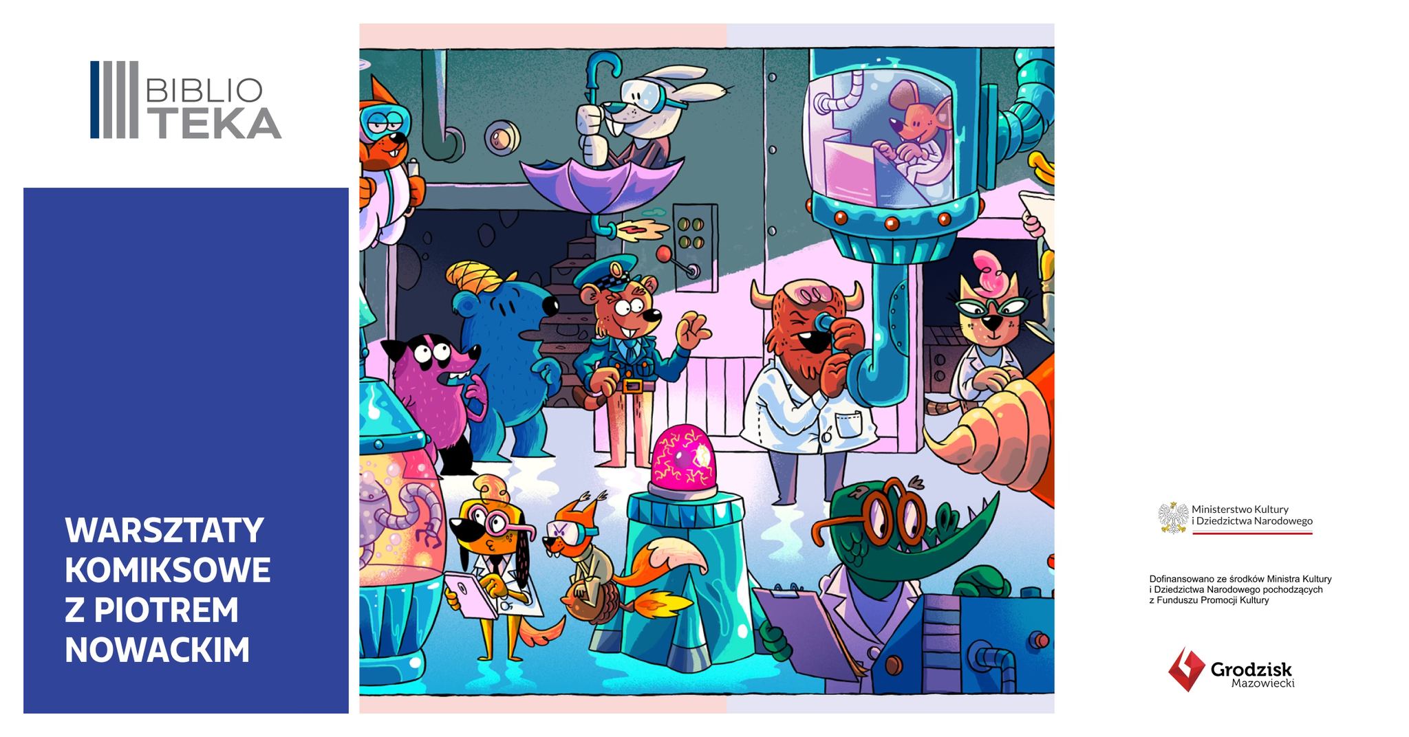 Warsztaty są organizowane w ramach projektu „Czas na komiks! Wokół komiksu w bibliotece”. Dofinansowano ze środków Ministra Kultury i Dziedzictwa Narodowego pochodzących z Funduszu Promocji Kultury.