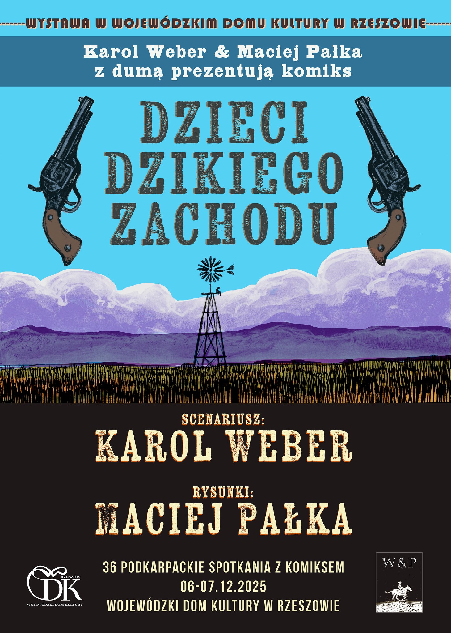 - 11:15 – 12:00 – Komiksowy western Macieja Pałki – spotkanie z współautorem komiksu Dzieci Dzikiego Zachodu (scen. Karol Weber).