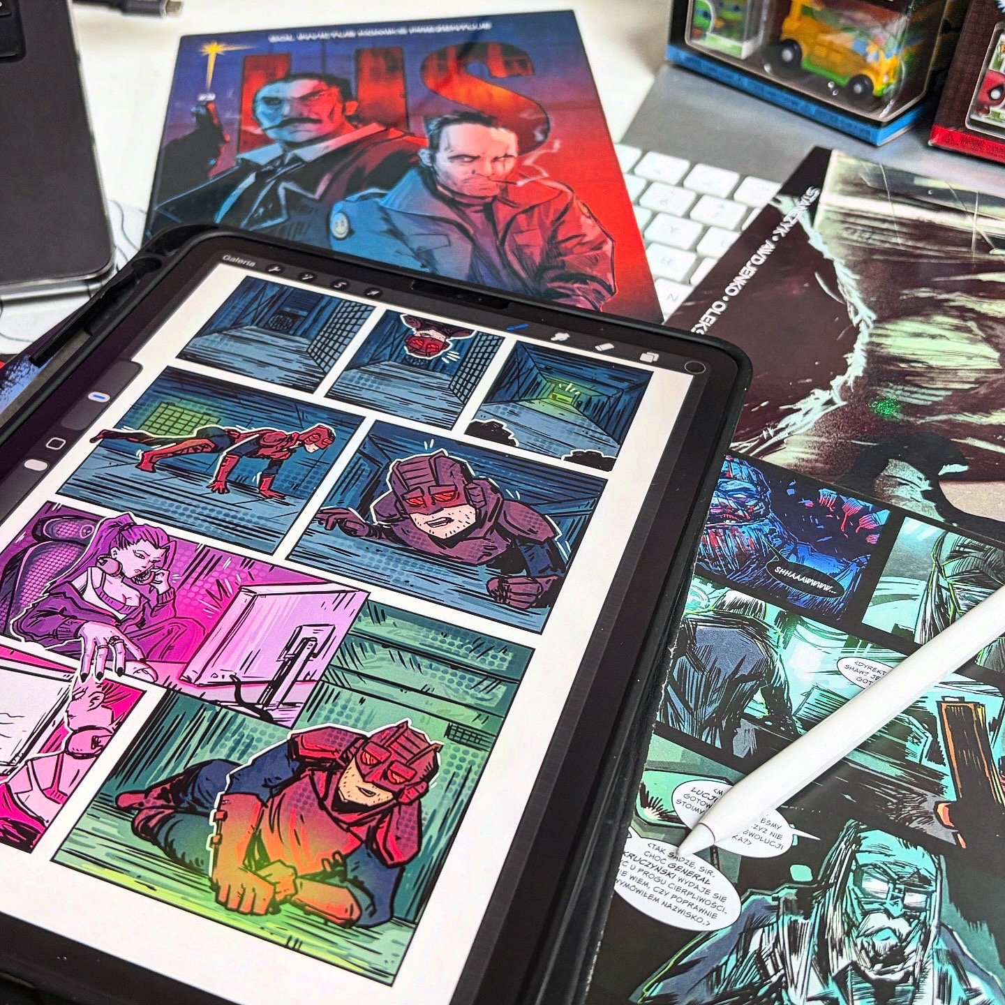 Uchylę może nieco rąbka zza kulis twórców indie. Pierwotny plan na stworzenie i wypuszczenie Lisa 2.0 był taki, że chcieliśmy to publikować najpierw przez polski serwis crowdfundingowy i tylko do Polaków, ale zrezygnowaliśmy z tego modelu na rzecz podtrzymania naszego klasycznego podejścia: czyli kampania na Kickstarterze skierowana do komiksiarzy z każdego zakątka świata. To USA, UK i Polska są od zawsze naszymi najmocniejszymi rynkami do ekspansji. Z czego czytelnicy ze Stanów to zdecydowanie najwięksi fani klasycznych zeszytówek. I jak się okazało, rzeczywistość po jakimś czasie nas zweryfikowała, i to wcale nie obawy przed mocnym nasyceniem rynku trykociarzami trzymają nas w blokach startowych, a pewne zmiany geopolityczne. Ciekawostka jest taka, że bardzo ciężko dziś nadać do Stanów paczkę z komiksami w rozsądnej cenie, a fani komiksu zza oceanu niechętnie dziś wspierają niezależne produkcje z Europy po tych wszystkich zmianach taryfowo-kosztowych, więc logistyczno-marketingowo jesteśmy nieco uziemieni. Do tego doszło sporo zleceń graficznych i po mojej stronie w międzyczasie i prace nad komiksem sporo nam się opóźniły. Ale dziś jesteśmy na dobrej drodze do zebrania niezbędnego materiału do ruszeniem z tym na poważnie. Niemniej jednak: trzymanie za to mocno kciuków na pewno pomoże (śmiech).