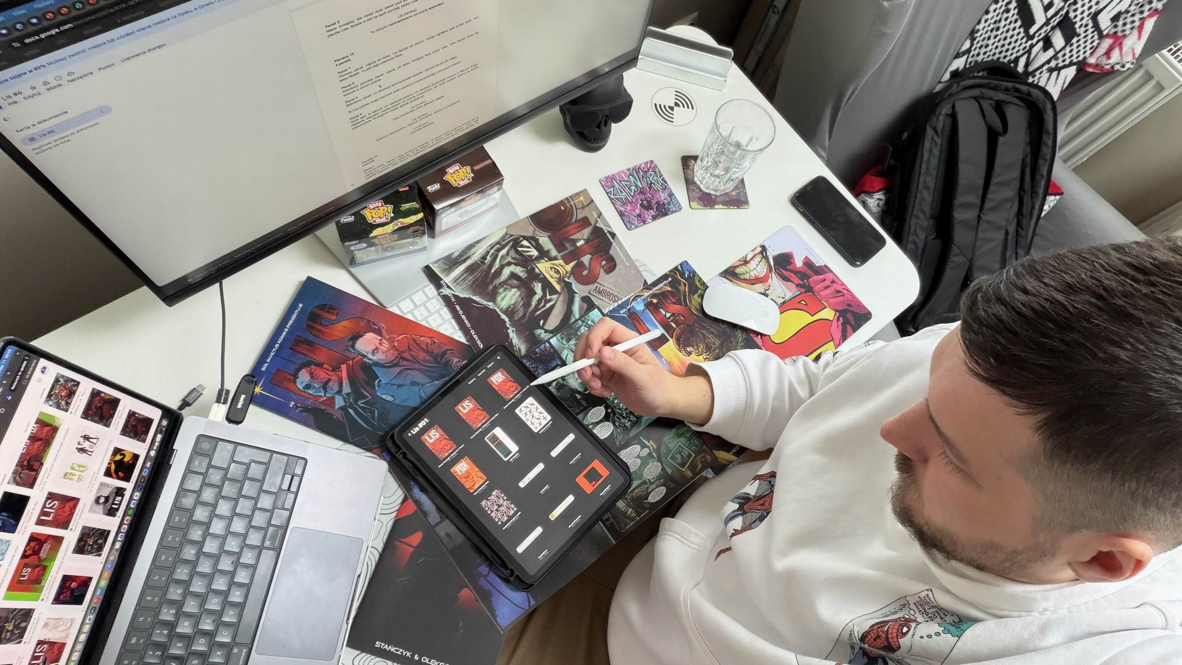 Absolwent Grafiki Komputerowej – licencjat pisał o historii i przyszłości medium komiksowego. Pasjonat. Legendy głoszą, że urodził się z ołówkiem w ręku. Prywatnie właściciel agencji kreatywnej i tata dwóch córek, z którymi wieczorami czyta komiksy. Miłośnik rysunku cyfrowego i animacji.
